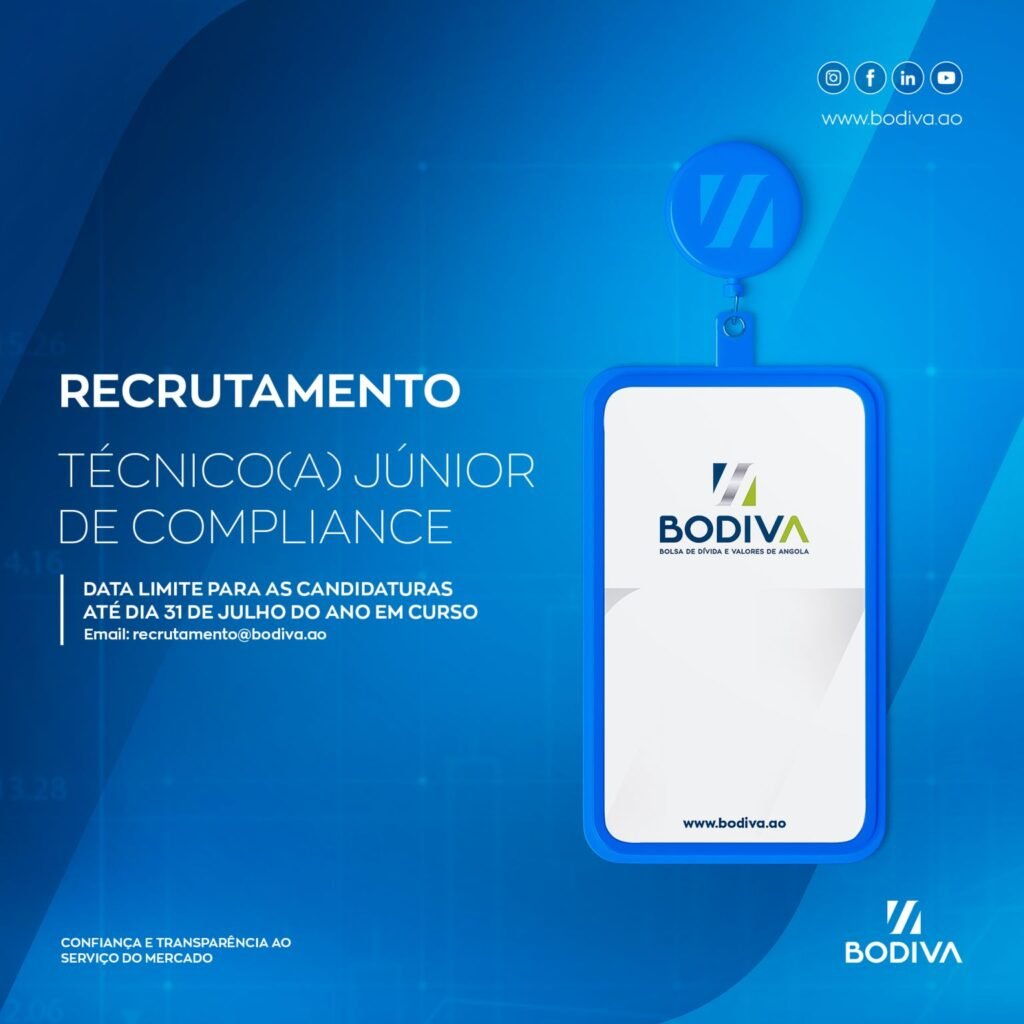 TÉCNICO(A) JÚNIOR DE COMPLIANCE BODIVA-BOLSA DE DÍVIDA E VALORES DE ANGOLA Descrição da Função TÉCNICO(A) JÚNIOR DE COMPLIANCE Missão: Prestar