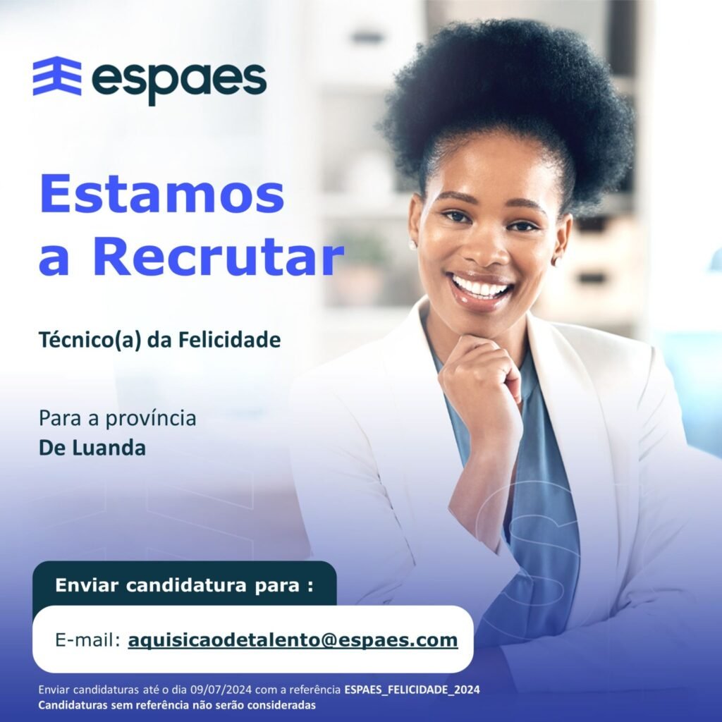 Técnico(a) da Felicidade Espaes Estamos a Recrutar Técnico(a) da Felicidade Para a província de Luanda Requisitos: Licenciatura em Gestão e