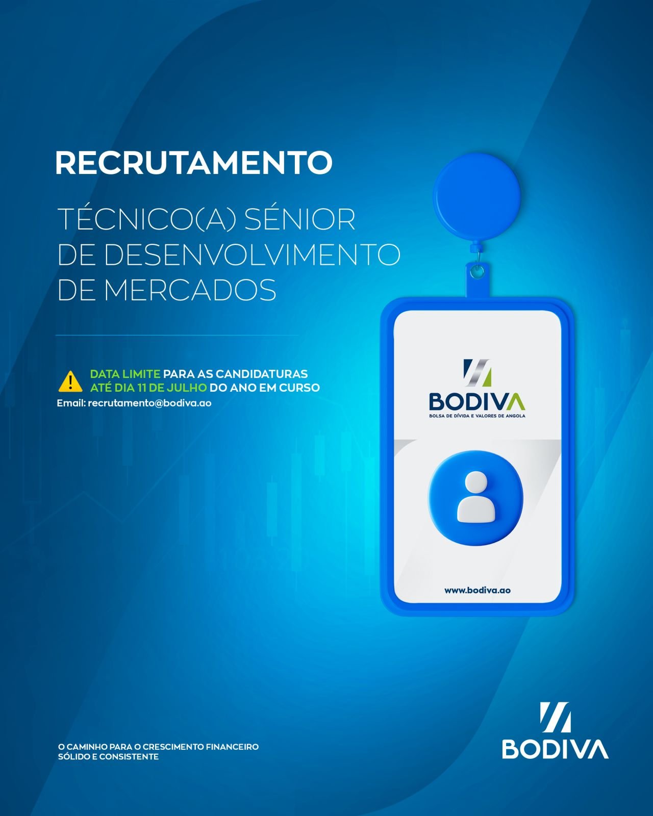 As candidaturas devem ser enviadas para o e-mail: recrutamento@bodiva.ao